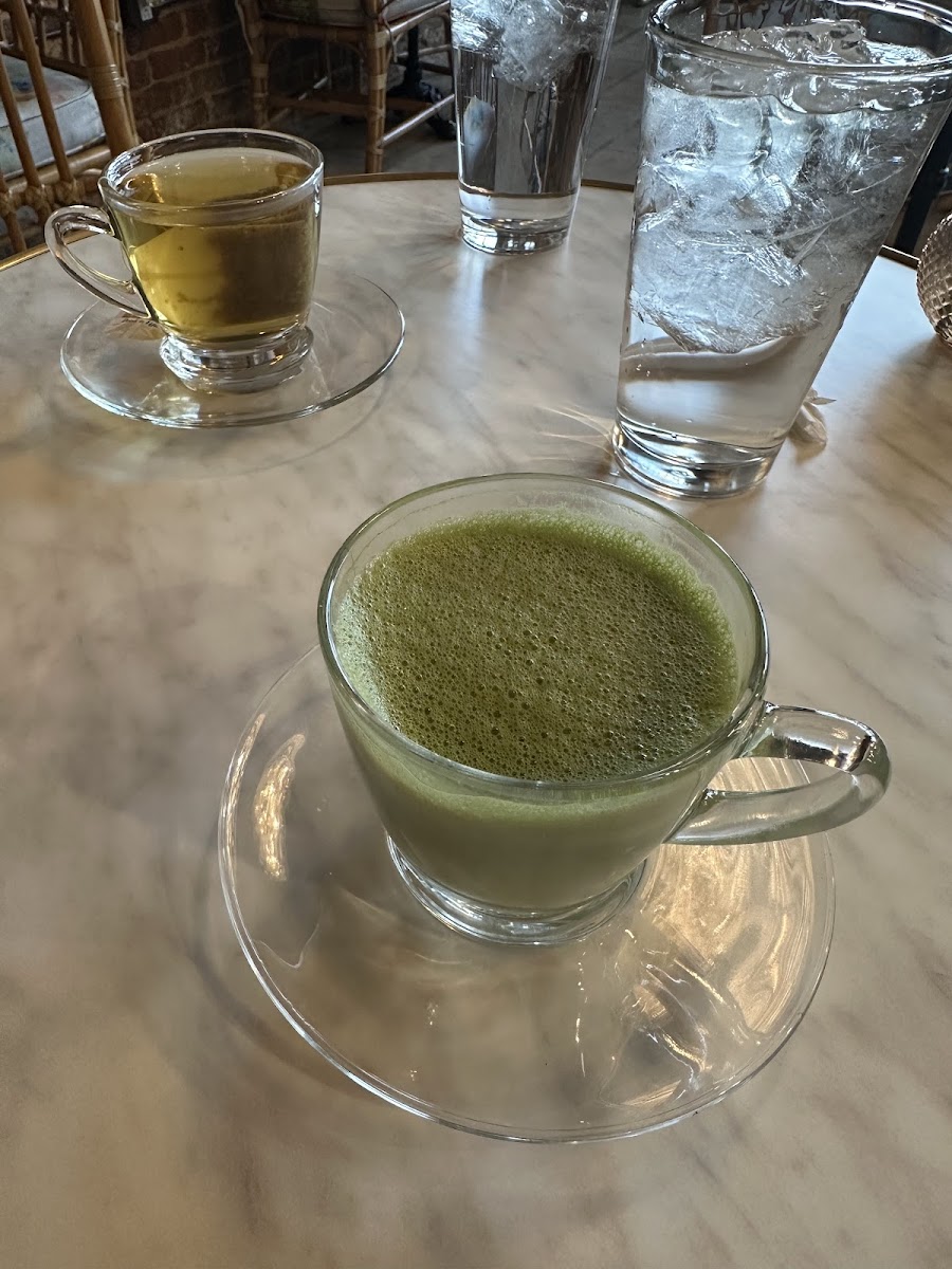 Atmosphere was great! Upscale with a artsy vibe just like you would see in France or any other bigger city in Europe. Chairs very comfortable, music was perfectly balanced not to loud very fitting for the mood. Beautiful art pieces and murals on the walls. The ladies that work here are super nice and helpful, and the food is terrific!! I had the matcha latte and it was way above what I expected. Honestly the restrooms are so nice!!!! I need to find out where they found the sink!